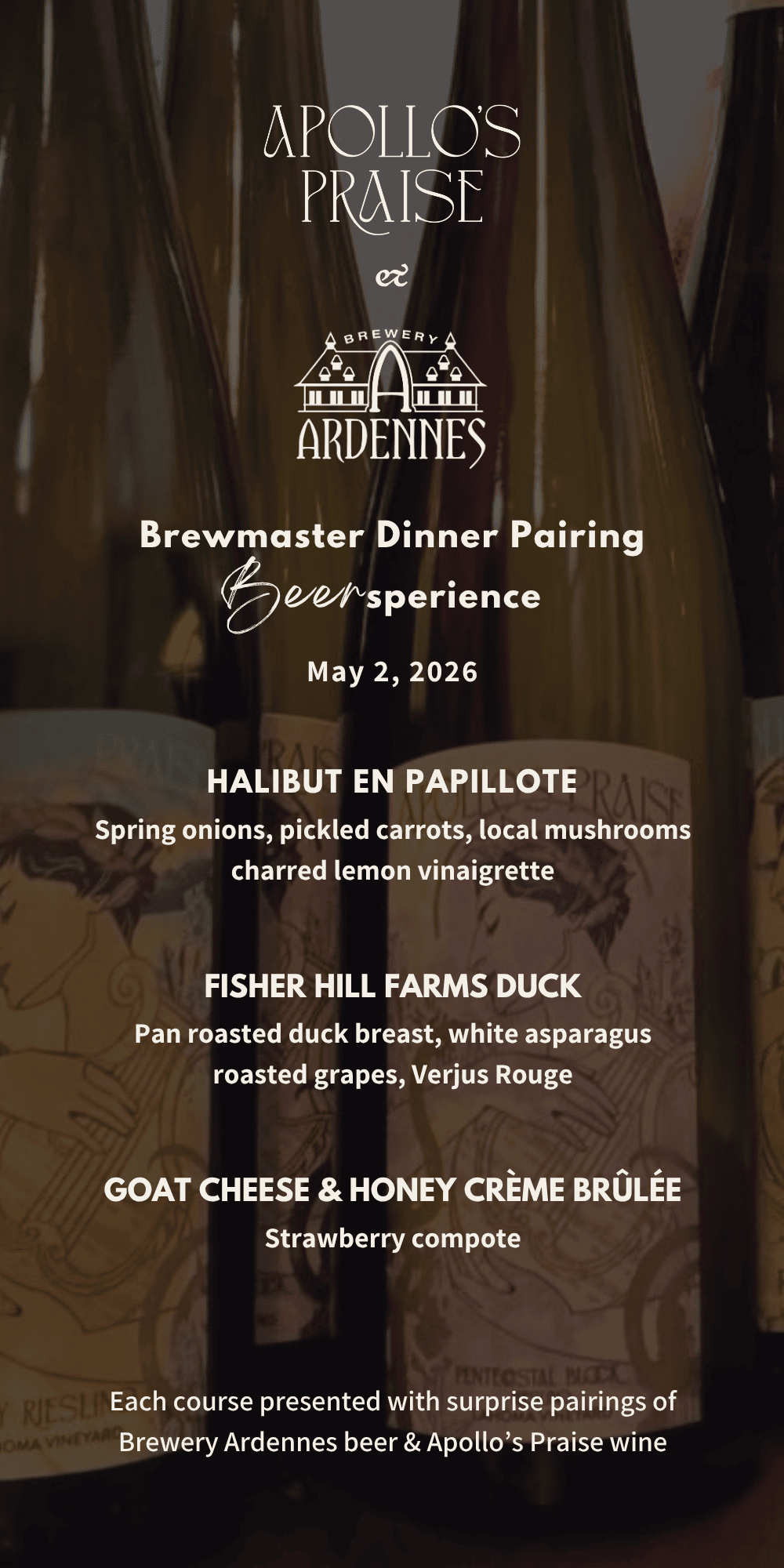 $104 per guest for a special 4-course menu highlighting Grand Cru Tripel and the best of seasonal cooking